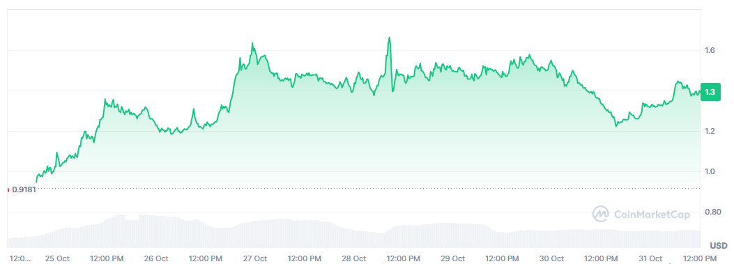 AERO es el token de gobernanza de la plataforma DeFi Aerodrome Finance. En la última semana tuvo una subida de 35% y cotiza a 1,08 dólares al momento de esta redacción.